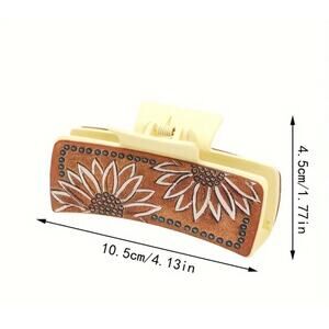 1pc Women’s Matte Finish Western Sunflower Pattern Design Craft Claw Clip - Faux Leather, Rectangular
