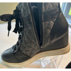 Women's Maurice Slip On Wedge Ankle Boot Size 9 Tie and Zip Black