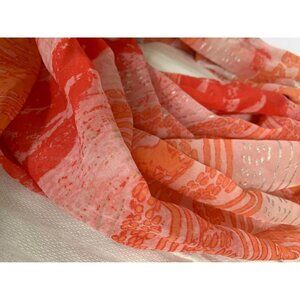 This vintage scarf boasts a vibrant mix of shades of orange hues. Its 27" x 37" size makes it versatile for multiple styling options. It's an ideal accessory to add a pop of color to any outfit.