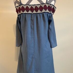 Women’s Maurices Off the Shoulder Smocked Blue Boho Knit Western Dress Medium