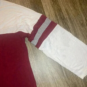 Red and white color block shirt with grey stripe on sleeves