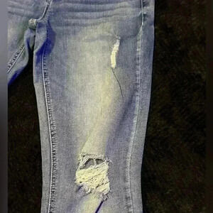 Women’s Maurice’s low rise distressed skinny stretchy jeans. Faux front pockets two back pockets. EUC. Size Med-Reg. 92% cotton 7% elasterell-p 1% spandex Waist 30” inseam 8” length 38” SFPF HOME