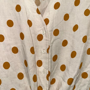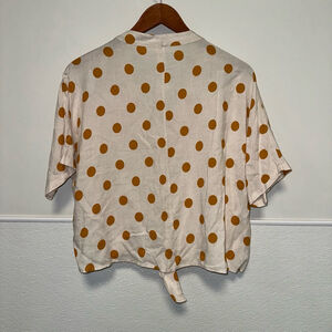 Women's Maven Blouse, M, NEW NWT Mustard Yellow Polka Dot Linen Blend Knot Tie