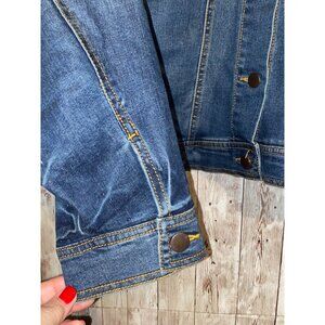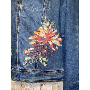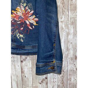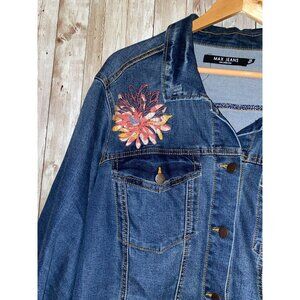 Women's Max Jeans Denim Jacket Embroidered Flowers Button Up Size 3X Stretch