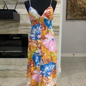 Absolutely Beautiful Multicolor Backless, Front Button Down Maxi. Cool vibrant colors make this the perfect summer dress. Size S