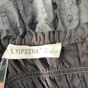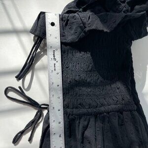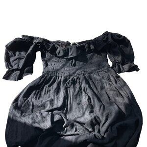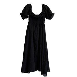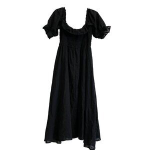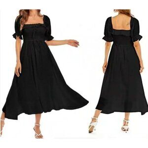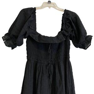 Women’s Maxi Black Dress Square Neck Puff Sleeves Sz XL Smoked Flowy Polka Dot