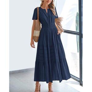 Women's Maxi Dress Cotton Polyester Elastic Waist Summer Casual V Neck — Effortlessly chic and perfect for warm days!