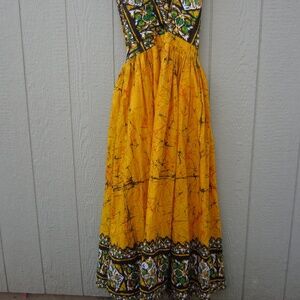 Womens Maxi Dress Free size M-2X Yellow Contrast Froral Halter Neck Fairy READ*