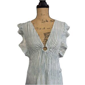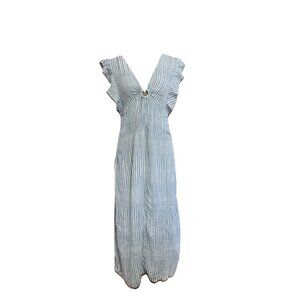 Womens Maxi Dress Ruffles Sleeveless Vneck Summer Spring Beach Coastal MEDIUM