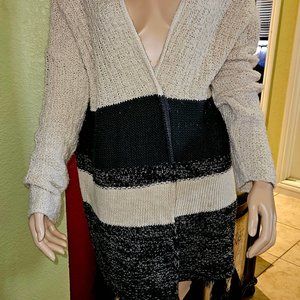 Get cozy for more than just lounging in this plush, eyelash knit sweater that promises to keep you warm. Modified dolman sleeves add to the slouchy, relaxed fit that's comfy while staying on-trend with a twist of wide color block stripes. Maxi Sweater for all great looks with Jeans, Slacks, Skirts or dresses. Ready to ship from clean and smoke free Home.