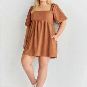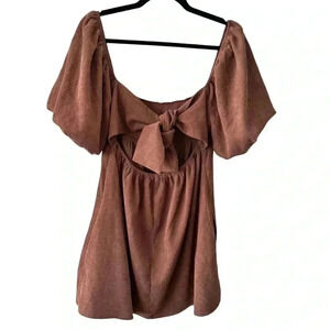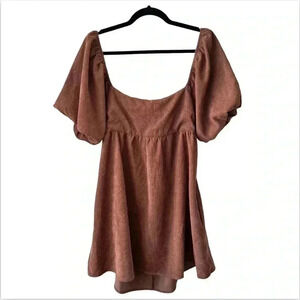 Francesca’s Blue Rain Mini Corduroy Brown Dress