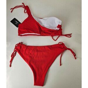 Womens Med One Shoulder Red Tie Side Bikini Swimsuit Set Beach Sexy Vacation