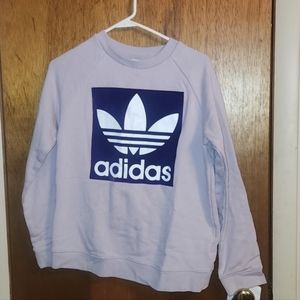Women's Lavender Adidus Trefoil emblem sweatshirt with large, dark purple velor trefoil emblem on the front- Medium