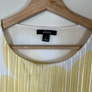 Women's Medium Alfani Pleated Floral-Print Yellow and White Blouse