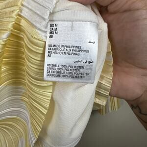 Alfani size medium yellow and white floral print crinkle pleated long-sleeve blouse.