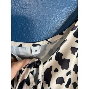This medium-sized dress features a striking animal print and a trendy cold-shoulder design. Made from rayon, it ensures a comfortable and stylish fit.