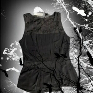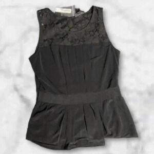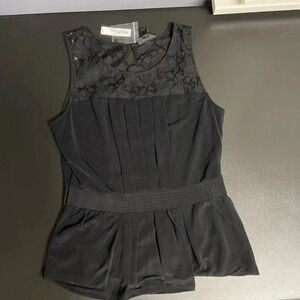 NWT Worthington Black Sleeveless Top Lace Pleats Floral Peplum Elegant Lined (M)