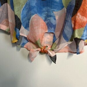 Women’s Medium Blouse Tie Waist Watercolor Artsy Colorful Coquette Y2K Style