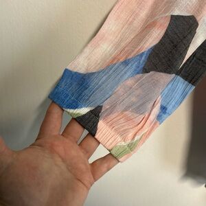 This is a pretty & colorful blouse .Tie waist,3/4 sleeves with elastic cuff.
