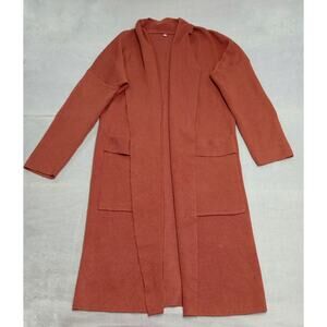 Women's Medium Cardigan Sweater Copper Color Pockets Draped Neck Open Front