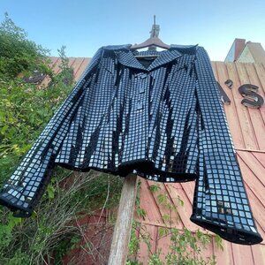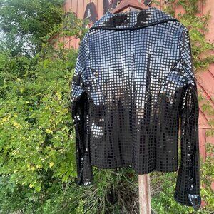 Women's Medium Clara S. Black Brilliant Reflective Button Down Festive Blazer