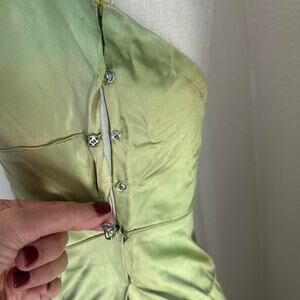 Vintage gown evening dress chartreuse satin halter 2000s elegant floor length prom formalwear retro glamorous bridal party summer wedding event attire handmade