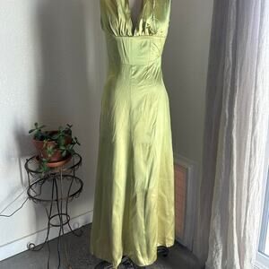 Women’s Medium Dress Chartreuse Satin Halter Gown Handmade Vintage Glam