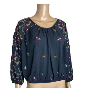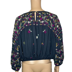Women's Medium Free People Wild Flowers Navy Embroidered Floral Boho Crop Top