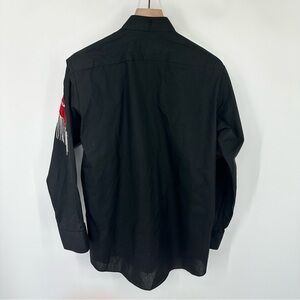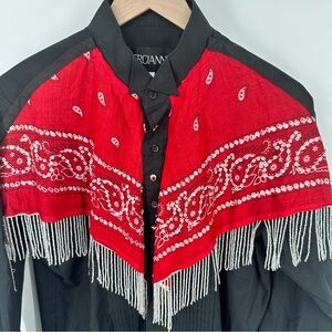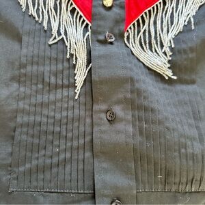 Womens Medium Fringe Western Button Down Shirt Sequins Black Red Rodeo Cowgirl