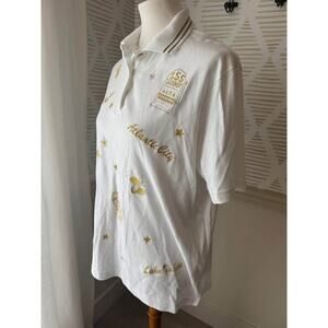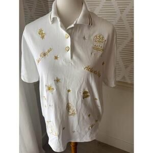 Women’s Medium Gold Embroidered Gambling Casino Vegas Polo Collared Shirt