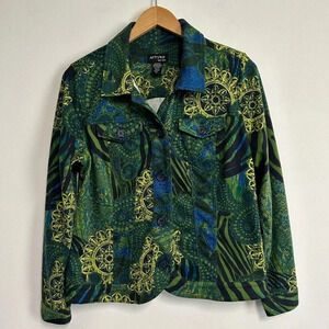 Attyre Green Blue Button Jacket Funky Boho Artsy Career Colorful Women's Medium