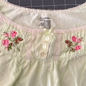 Keywords: sleepwear top, pajama top, yellow top, floral embroidery, Secret Treasures, nightshirt, womens sleep top, lace trim, summer sleepwear, cottagecore, vintage inspired, romantic, mothers day, Feminine, Romantic, Soft, Y2K, Preppy,