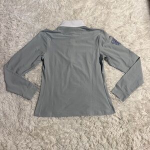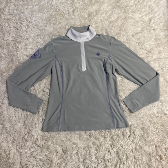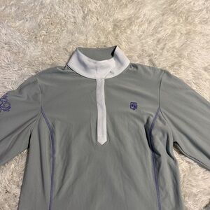 Women’s Medium Grey Romfh Long Sleeve Horseback Riding Show Shirt. Slight discoloration shown in photos.