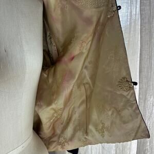 Women’s Medium Jacket Black Gold Satin Floral Vintage Chinese Blazer Bamboo Print Evening Jacket