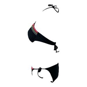 Women’s Medium Large 2 Piece Swimsuit Rue Bleu Rue 21 Black and Multicolor Trim