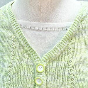 This Christopher & Banks womens medium light green pullover sweater is more than just a henley style sweater; it has knit geometric designs to add visual texture! So classic, yet so fun. Modesty panel at v-neck.