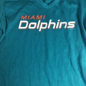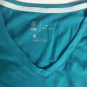 Women's Medium NIKE Miami Dolphins Dri-Fit NFL Apparel V-neck Teal T-Shirt C28.