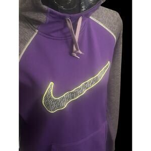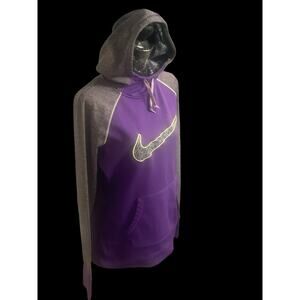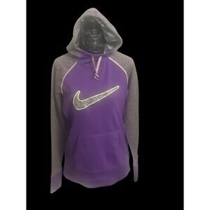 Women's Medium Nike Therma-Fit Hoodie Purple Grey With Swoosh, Thumb Holes