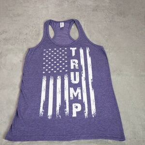 Women’s Medium Purple Trump American Flag Racerback Tank Top Patriotic USA Shirt