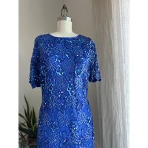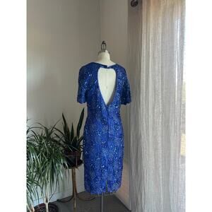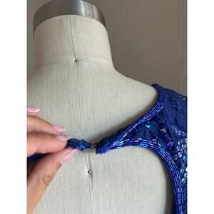 Women’s Medium Royal Blue Sequin Beaded Dress Keyhole Back 80s Glam Vintage