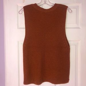 This is a woven, rust colored sweater shell. Perfect for chilly fall days! Worn once and in like-new condition.