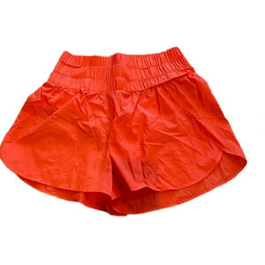 Women’s Medium TCEC Red/ Orange High Waisted Nylon Activewear Shorts Elastic Waist Lined Lightweight pull on style.