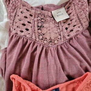Chaps - Coral top with lacey embroidery at the top and cap sleeves.