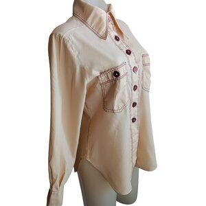 Women's Medium Vintage 1970's Rayon Mod Top/Blouse Purple Stitching By House
