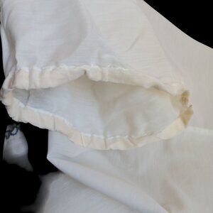featherweight perm press, has some yellowing on cuffs, no rips, a few loose blue threads, the front tie is slightly twisted)