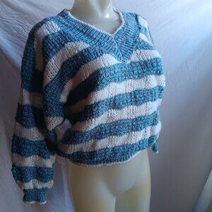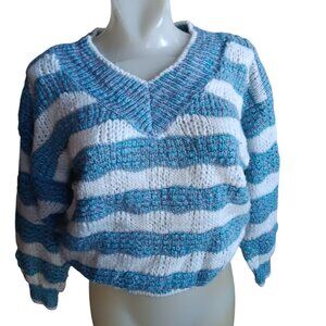 Women's Medium Vintage Oversize V-Neck Striped Valley girl Preppy Sweater 80s