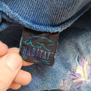 Women's Medium Vintage Sweatshirt Habitat Embroidered Floral Denim Collared Neck