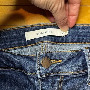 Women’s Medium Wash Disclosed Flare Jeans. Size 9/29. Approx flat lay measurements: Waist 15.5”, Rise 10” and Inseam 25”. Cotton, Poly, Rayon, Spandex blend. Very comfy and stretchy! In excellent preloved condition. Pet free, smoke free home.