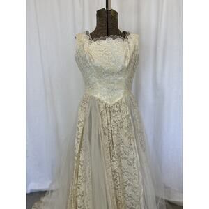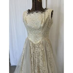 Women's Medium Wedding Dress Ivory Lace and Cream Tulle Vintage 1950 Bridal Gown
