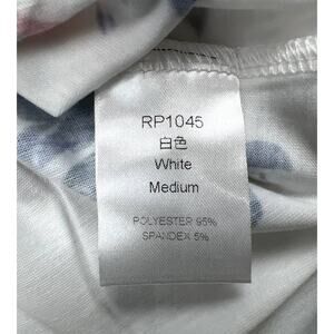 Women's Medium White Floral Sleeveless Blouse Flowy Tank Flare V Neck Button Top Shirt Tunic